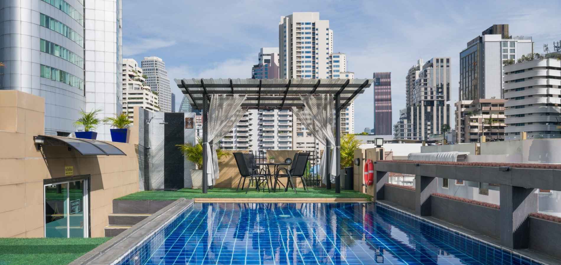 iCheck inn Residence Sathorn offers stylish serviced apartments with kitchens, pool, fitness, and pet-friendly rooftop garden in a tranquil city setting.