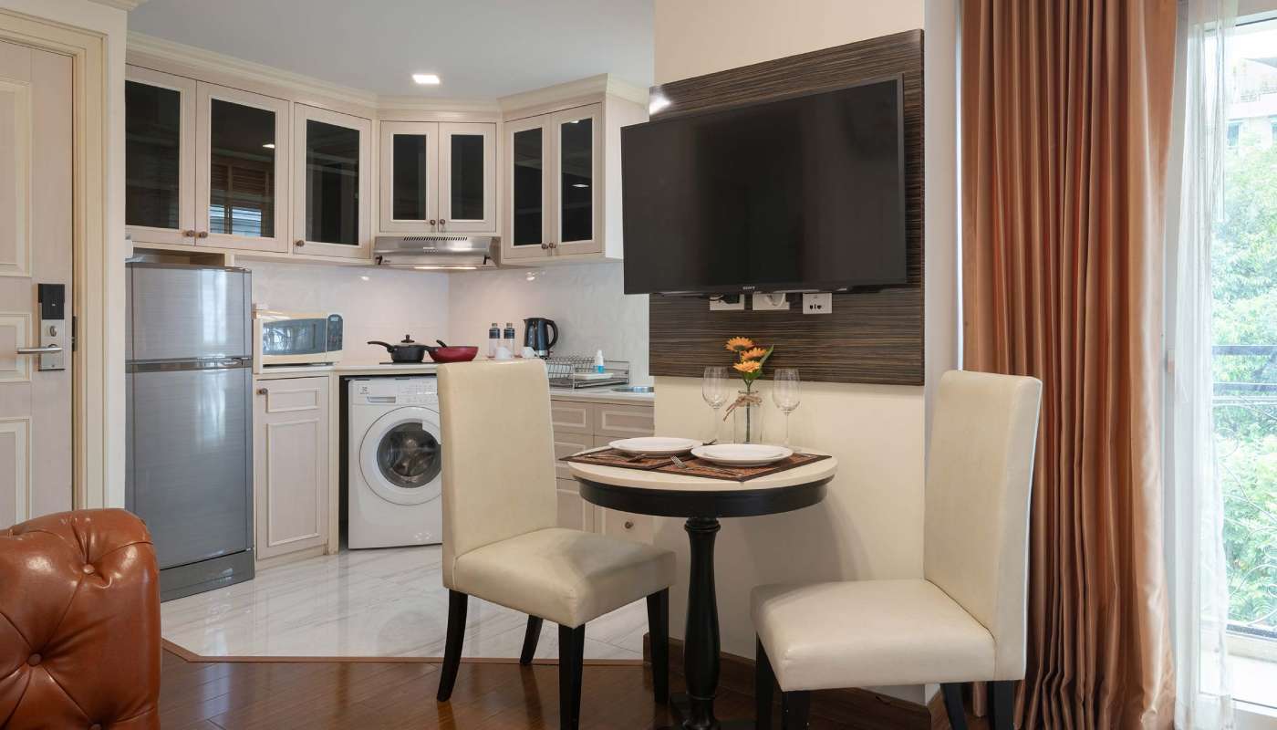 All of our lovely serviced apartments have been created with our valued guests’ comfort in mind. As a result, each apartment has a large living space. Modern bathroom, fully equipped kitchen With a bathtub and a separate shower. as well as a balcony with views of the vibrant local streets and skyline. Swimming pool, fitness facility, and shuttle service to Thonglor, JJ Avenue BOOK NOW