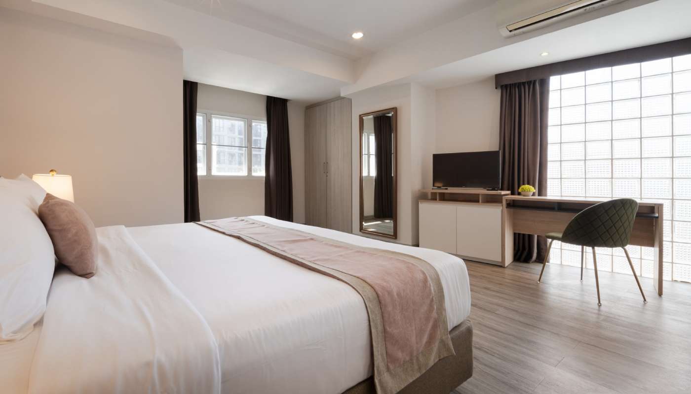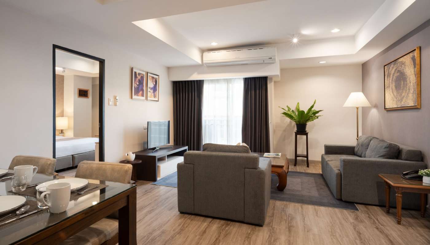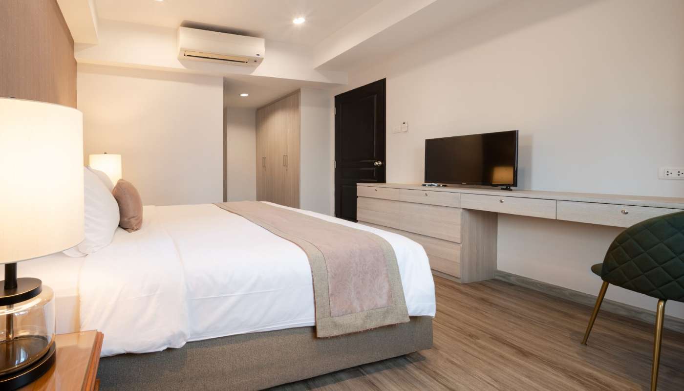 Aspira Ruamrudee Residence is a completely renovated property in heart of Bangkok, in the popular residential area of Ruamrudee. Tucked away in a residential area of Bangkok’s business district just off Wireless Road, the property offers easy access to an upscale neighborhood surrounded by trendy shops, hip restaurants, and clubs. With a prime location on Soi Ruamrudee, this residence is only about a seven-minute walk to the Ploenchit BTS Skytrain Station, with easy to access the South Ploenchit expressway. International shopping malls like Central Embassy and Central World Plaza are just a few minutes away from these serviced apartments. To comfort our guests, all the units at the Residence offer spacious rooms of 30–90 square meters.