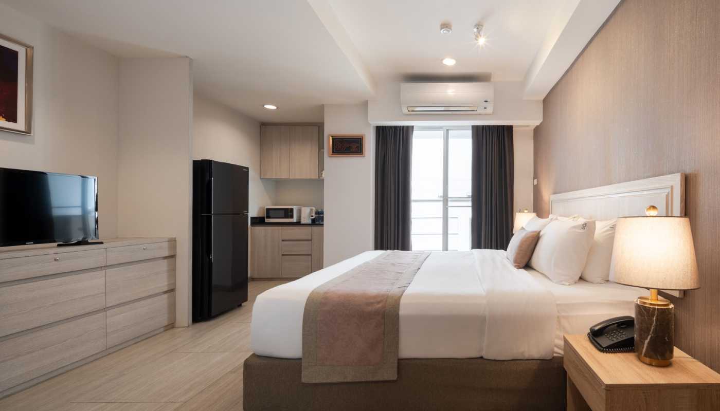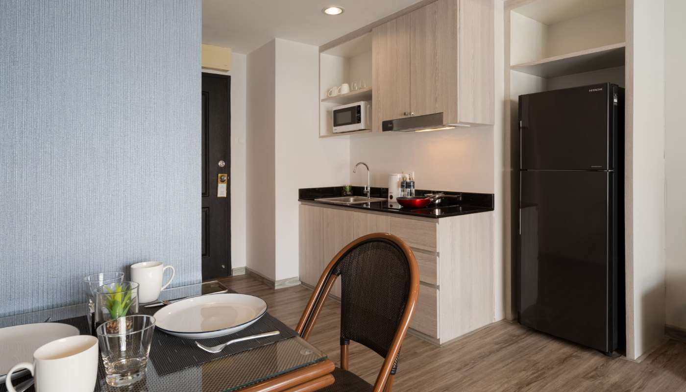 Our apartments appeal to long-stay guests, and all units are decorated with new and elegant interiors and equipped with full in-room amenities like washer, kitchenette, and modern bathrooms. Aspira Ruamrudee Residence is the perfect choice for those travelers who are looking to stay in Bangkok’s city center for either a short time or a long time, but at the same time demand to enjoy the calmness that Bangkok has to offer. The residence boasts a laundry corner, lobby lounge with flat-screen TV, free Wi-Fi, and free electric shuttle service.