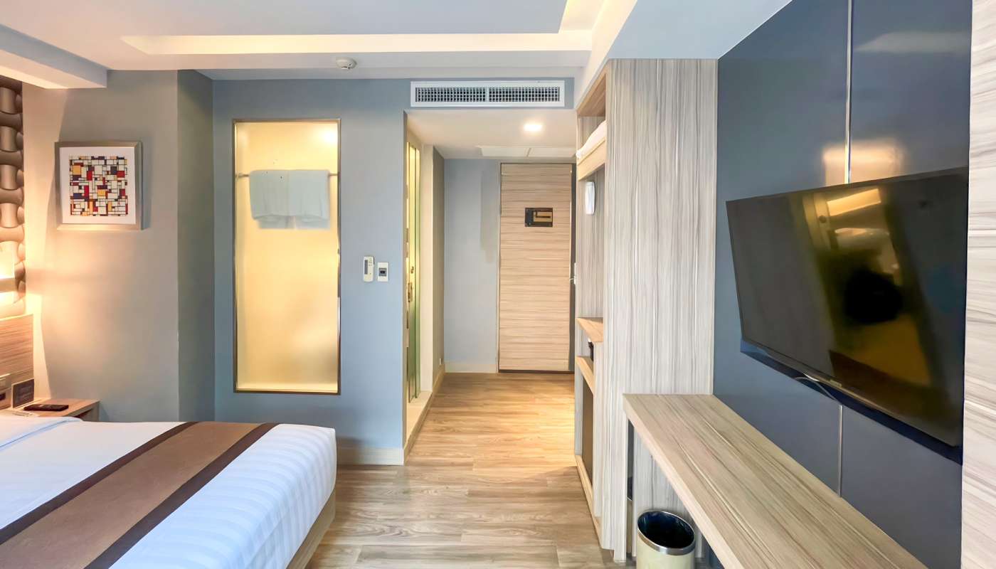 Aspira Sukhumvit, located on Soi 7/1, offers a fresh, new, cost-effective solution to accommodation in one of Bangkok’s most thriving districts. It is situated at the heart of Sukhumvit Road, within easy reach of the (adult-oriented) Nana Entertainment Plaza. This boutique hotel is NOT for families but appeals much more to adult single male travelers or groups of men. This newly built property offers 50 modern air-conditioned rooms stylishly furnished with a bright, contemporary interior. Each room is fitted with a flat-screen cable TV, electronic safety deposit box, and electric kettle (upon request). Modern bathrooms include a walk-in shower with a selection of complimentary toiletries.