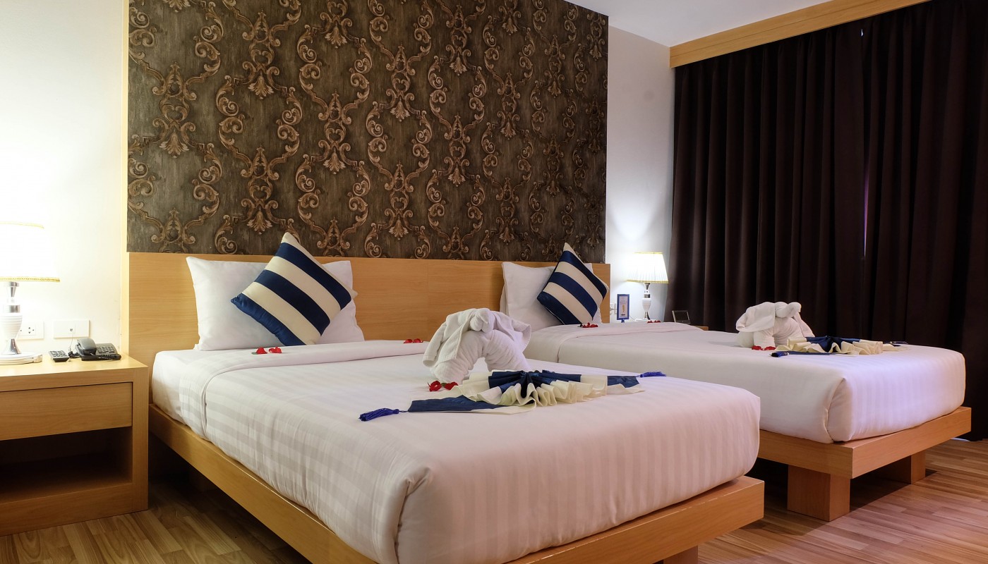 All rooms have comfortable bedding, whether a superior room (twin beds) or deluxe room (king-size bed).