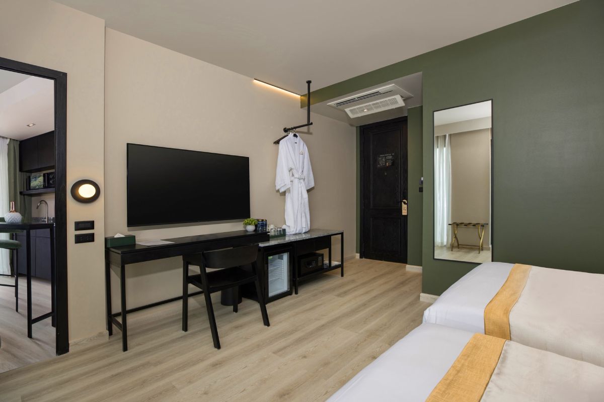 การออกแบบของสยามา แมนชั่นได้รับแรงบันดาลใจจากมรดกอันล้ำค่าของสถาปัตยกรรมชิโน-โปรตุกีส โดดเด่นด้วยกระเบื้องปูพื้นแบบโปรตุเกสที่ประณีตและองค์ประกอบการตกแต่งที่งดงาม ระเบียงทางเดินของเราประดับด้วยการออกแบบแบบภาคใต้ดั้งเดิม สร้างบรรยากาศที่มีชีวิตชีวาสะท้อนวัฒนธรรมท้องถิ่น ห้องพักของเราผสมผสานความสง่างามแบบอินโดจีนและไทยเข้ากับสิ่งอำนวยความสะดวกสมัยใหม่ได้อย่างลงตัว ตกแต่งด้วยโทนสีไม้และพาสเทลอ่อน เพิ่มความโดดเด่นด้วยสีสันสดใส แต่ละพื้นที่สร้างบรรยากาศที่สงบสุขพร้อมกับการเชิดชูมรดกทางวัฒนธรรมอันล้ำค่า ทุกองค์ประกอบในห้องพักและห้องสวีทได้รับการออกแบบอย่างพิถีพิถันเพื่อยกระดับประสบการณ์การเข้าพักของคุณ จองเลย